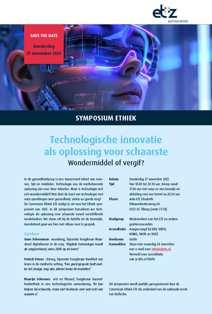 Dit symposium wordt jaarlijks georganiseerd door de Commissie Ethiek ETZ als onderdeel van de nationale week van Reflectie.