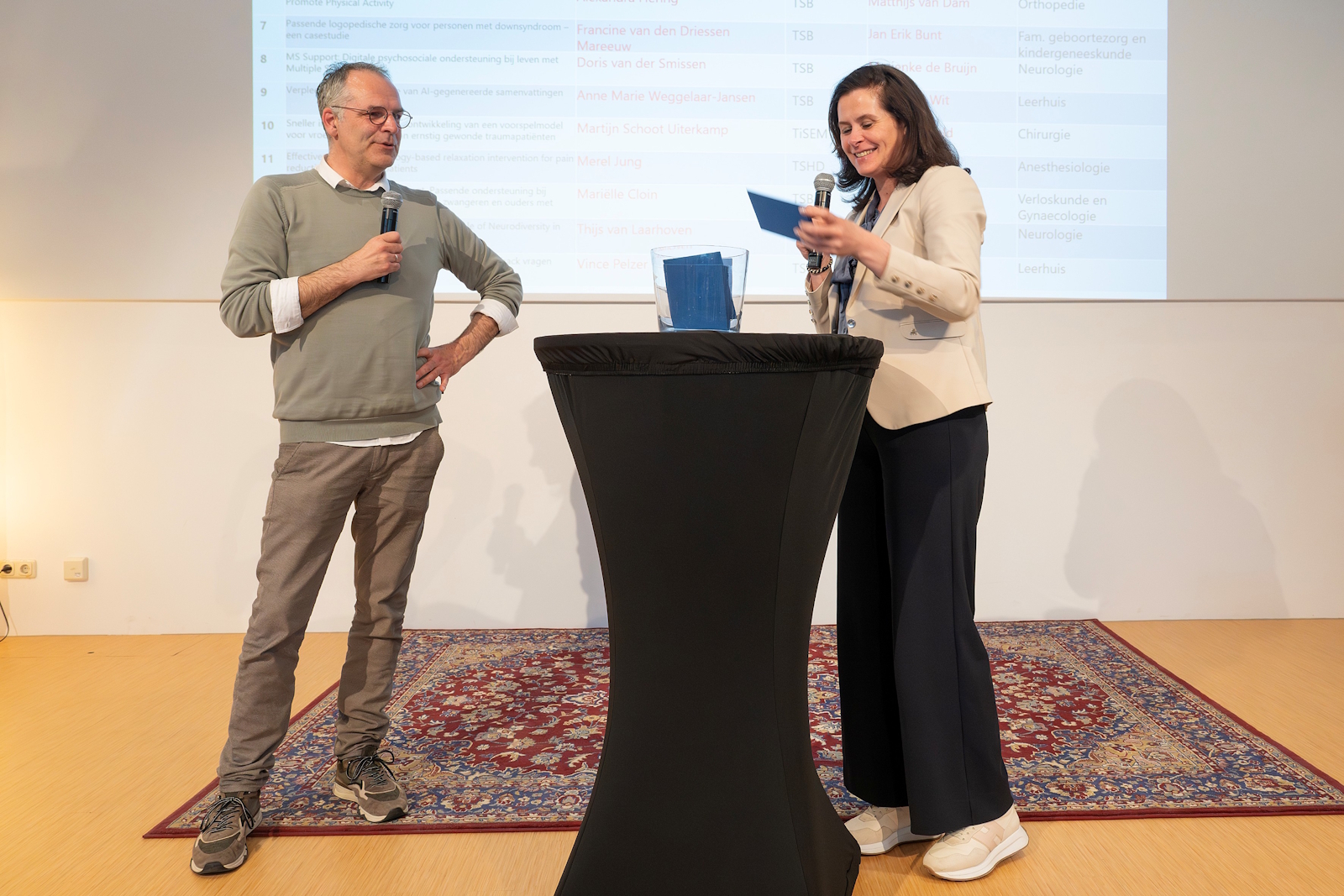 Alle ingediende projecten waren eerst door de programmagroep beoordeeld op kwaliteit en de uiteindelijke toewijzing vond door loting plaats: dit is niet subjectief en geeft alle indieners een gelijke kans. Daarnaast verkleint het de aanvraag- en reviewlast. Deze procedure was al succesvol toegepast in het programma ‘Digital Sciences for Society’ van Tilburg University en uiteraard tijdens de loting vorig jaar.